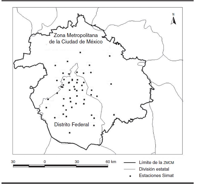 Con la información que proporciona el Simat se construyen índices, representados por cinco grandes sectores de la ciudad; las normas oficiales mexicanas y programas de acción local (SMA-DF, 2007). Tanto los datos obtenidos del monitoreo como el desempeño de las estaciones (suficiencia de la información, desempeño anual y suficiencia histórica) son evaluados por la Dirección de Monitoreo Atmosférico de la Secretaría de Medio Ambiente del Distrito Federal con el propósito de proporcionar información uniforme en términos de frecuencia y parámetros de mediciones de alta representatividad (superior a 75%, que en caso de mediciones de O3 se presenta en 13 estaciones, de CO en 16 estaciones, de SO2 en 19 y de PM10 en 10 estaciones) que permitan comparar los datos de diferentes estaciones en ciertos periodos de tiempo y a partir de ello obtener indicadores confiables de los contaminantes atmosféricos y los parámetros meteorológicos.
