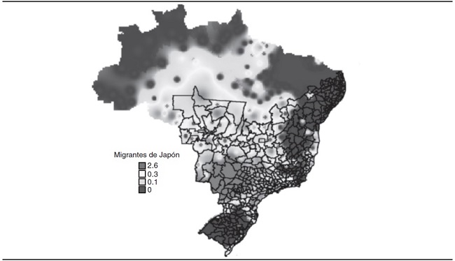 Los datos para Brasil muestran que hay tres grandes flujos de migración internacional de retorno: Paraguay, Estados Unidos y Japón. Cada uno de ellos tiene su propia área de preferencia como destino. Para Paraguay, la región se localiza en las microrregiones de estados limítrofes tales como Paraná, Mato Grosso do Sul y Mato Grosso. Los flujos provenientes de Estados Unidos tienden a regresar a alguno de los tres estados más poblados de Brasil: São Paulo, Río de Janeiro y Minas Gerais. Los migrantes de Japón muestran una tendencia a regresar al área específica en los estados de São Paulo y Paraná.
