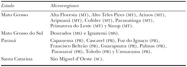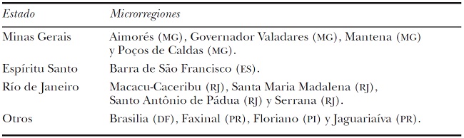 El cuadro 6 muestra las microrregiones clasificadas en los clusters con grandes flujos de Japón. Aquí se puede observar que todos ellos estuvieron localizados en una gran área que incluye el norte del estado de Paraná, el este de Mato Grosso do Sul y el suroeste de São Paulo (mapa 3).