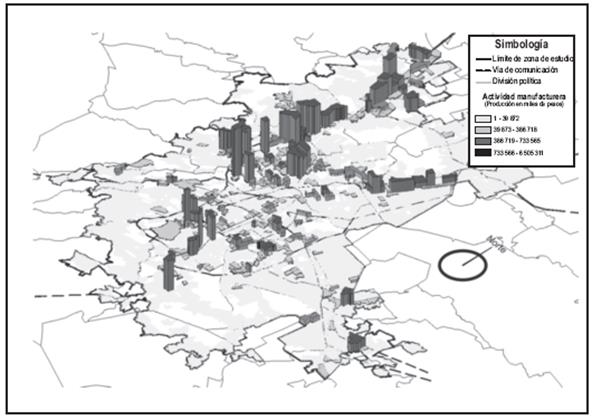 La concentración industrial microespacial requiere de la aglomeración de un conjunto de condiciones generales de la producción (infraestructura y equipamiento) en zonas muy específicas en el interior de las delegaciones y los municipios conurbados donde se ubican las principales empresas manufactureras. Las redes de comunicaciones que incrementan la accesibilidad a estas zonas, como las vías férreas y las carreteras, tienen un área de influencia muy circunscrita. Esto ocasiona que en el interior de las demarcaciones caracterizadas con muy alta actividad industrial, como la delegación Azcapotzalco y los municipios conurbados de Tlalnepantla, Naucalpan, Ecatepec y Cuautitlán Izcalli, haya una importante concentración industrial e infraestructural en solo un fragmento de su territorio.