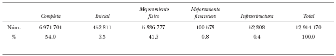 Esa gran capacidad de producción se fue potenciando con el tiempo. Es así que entre 2001 y 2011 se llegó a un total de 13 millones de financiamientos, de los cuales poco más de la mitad (54%) correspondió a la producción de viviendas completas, casi 7 millones de unidades; y 41% al mejoramiento físico de viviendas ya existentes, poco más de 5 millones (Cuadro 2).