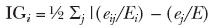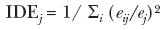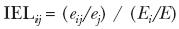 En donde eij es el empleo del grupo i en la ciudad j; Ei es el empleo nacional en el grupo i; ej es el empleo total en la ciudad j, y E es el empleo total nacional. El índice tiene valores entre cero (exacta correspondencia entre ambas distribuciones o carencia de concentración geográfica) y uno (máxima desigualdad entre ambas distribuciones, o máxima concentración geográfica). Su valor también indica la proporción del empleo del grupo i que se debería redistribuir en el espacio para lograr una distribución proporcional.