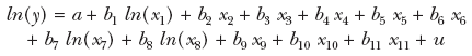 La interpretación del coeficiente de regresión en variables absolutas, xi, es que al aumentar en una unidad la variable independiente, la variable dependiente tiene un cambio porcentual de 100*bi. En las variables independientes logarítmicas, ln(xi), al aumentar la variable independiente en 1%, la variable dependiente cambia en bi por ciento.