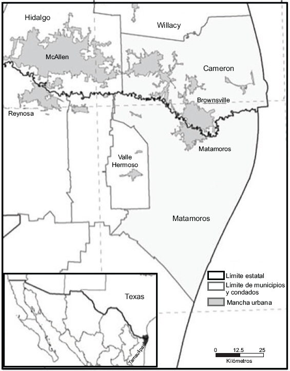 En este contexto, la planificación y la gestión urbana transfronteriza aparecen como prácticas y herramientas para una más eficiente acción urbana. Sin embargo es poco habitual que dos (o más) ciudades fronterizas vecinas lleven a cabo acciones de forma coordinada o conjunta, es decir, mediante la colaboración transfronteriza. En la frontera México-Estados Unidos, por ejemplo, las ciudades gemelas han emprendido varias iniciativas de este tipo, aunque aún son escasas (Fuentes y Peña, 2005; Herzog, 2000; Oliveras, 2014; Vázquez, 2001). El desarrollo de las iniciativas transfronterizas se puede beneficiar de la convergencia urbana, aunque también puede ser limitado por la divergencia. En este sentido, la presente investigación tiene por objetivo evaluar las oportunidades de la planificación y la gestión transfronterizas en función de la convergencia / divergencia urbana desde el ámbito local. Del conjunto de factores que influyen en la colaboración transfronteriza, se da respuesta específicamente a uno de ellos, en este caso la convergencia (facilidades) / divergencia (obstáculos) en las políticas territoriales (prioridades, objetivos, estrategias y procedimientos). Para el análisis se ha tomado el interesante caso que ofrecen las ciudades gemelas de Matamoros y Brownsville (mapa 1), situadas en el ribera del río Bravo / Grande en su llanura deltaica y sobre la línea fronteriza entre Tamaulipas y Texas.