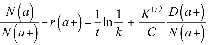 donde N(a) y N(a+) son el número de años-personas vividos a la edad exacta a, y a la edad a y más, respectivamente, durante el periodo intercensal; r(a+) es la tasa específica de crecimiento acumulada; D(a+) son las muertes intercensales registradas para las edades a y más; t es el intervalo del periodo intercensal; K es la cobertura de enumeración del segundo censo con respecto al primero, y C es la cobertura del registro de muerte durante el periodo intercensal. Los valores de K y C se suponen invariantes con la edad. En la práctica, N(a) y N(a+) son calculados a partir del recuento de población por edad y sexo del censo.