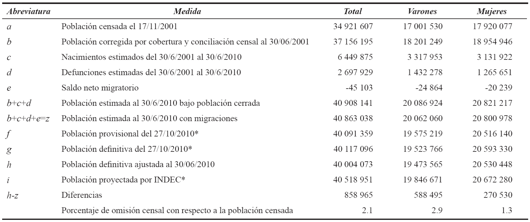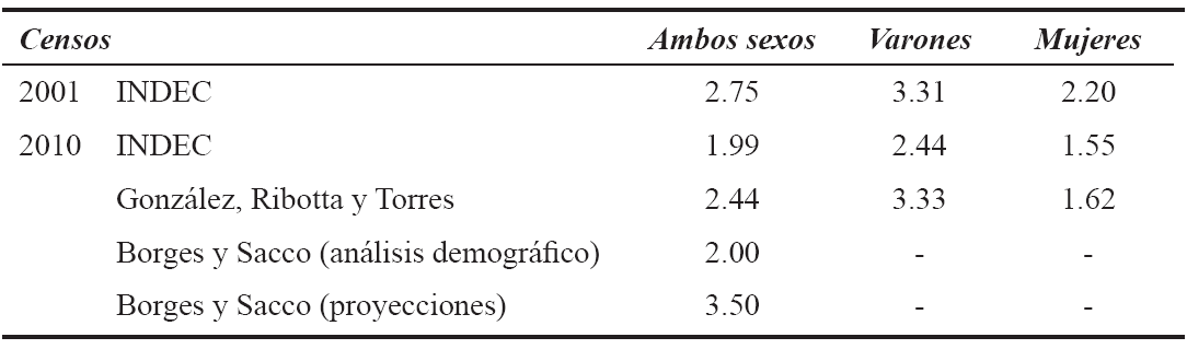 Massa, C. (2006), Análisis de la cobertura del Censo Nacional de Población, Hogares y Viviendas 2001 de Argentina, Buenos Aires, INDEC.