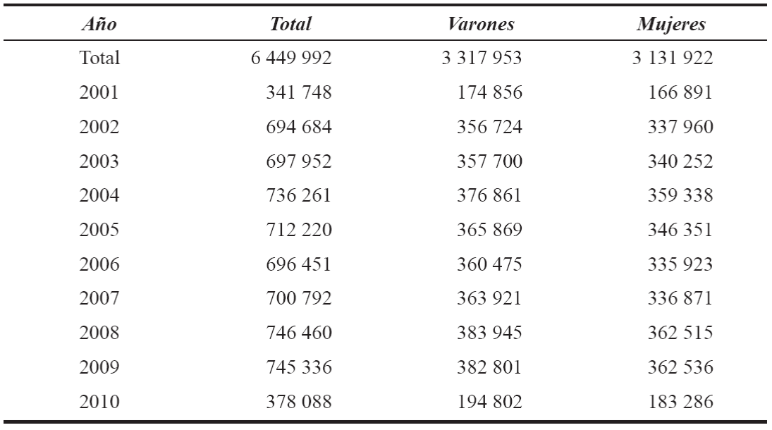 Se adoptó también la hipótesis de que los nacimientos anuales se distribuyeron de forma proporcional a lo largo del año. Se consideró, para los nacimientos del año 2001 y los nacimientos del 2010, su división entre dos para hacer una estimación al 30 de junio. Para el resto de los años se tomó el total de los nacimientos y las defunciones.