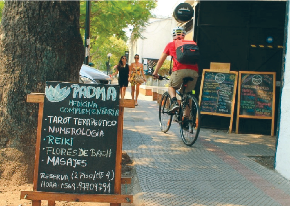 La disolución de los vínculos entre pares, el sentido de barrio como lo indica Ariel Gravano (2005), decae con el ingreso de las especialidades comerciales de la zona. La mutación hacia talleres, mueblerías o bares exclusivos, quiebra el ciclo espacial de la comunidad, instalándose la idea de barrio como alternativa de negocios dentro de un circuito dedicado a un grupo específico de personas. Las Fotografías 1 y 2 ilustran dicha condición de otredad, con la que el Barrio Italia ha buscado seducir a sus paseantes a partir de un nuevo ciclo espacial.