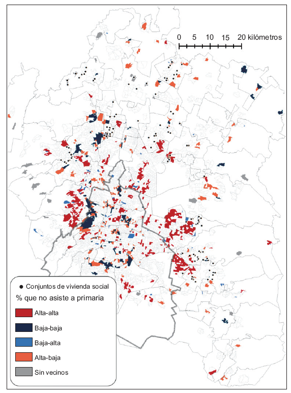Abstract: This study investigates the degree of residential segregation in the municipalities that have hosted the construction of 121 social housing complexes, built in the northeastern corner of the Valley of Mexico during the 2000-2010 decade, as well as variations in the degree of accessibility of these urban complexes during the same period. Through indicators of accessibility, spatial autocorrelation, and measurements of the supply and demand of social housing, the authors conclude that there is a high degree of segregation in these residential complexes and the municipalities that house them with respect to the central municipalities of the Valley of Mexico. This segregation is slightly reduced over time for some of the variables studied, while the oversupply of social housing may have contributed to residential segregation on a metropolitan scale.