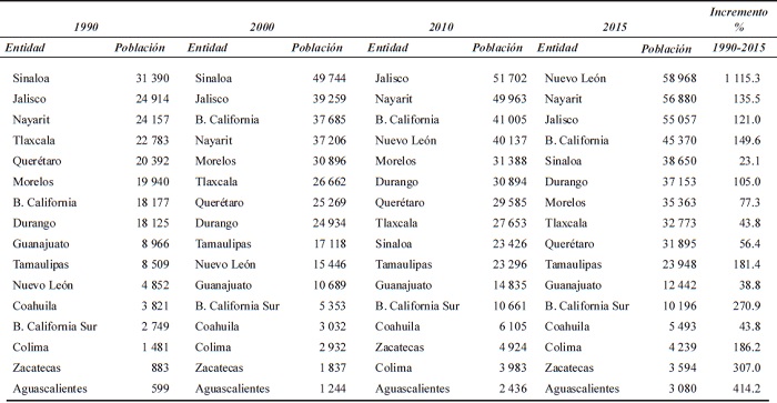 De acuerdo con los resultados de las últimas tres fuentes de información (2000, 2010 y 2015), tanto el estado de Yucatán como el de Hidalgo siguen perdiendo población, aunque en menor medida. En ambas entidades el proceso migratorio se ha diversificado generando nuevas rutas migratorias a Estados Unidos. Por otra parte, en las zonas rurales de Yucatán también se han establecido maquiladoras, las cuales han ocupado una fuerza laboral “abundante, dócil y barata”, ya que los sueldos representan la mitad de los salarios que percibe un operario en las maquiladoras de la frontera norte (Iglesias, 2011).