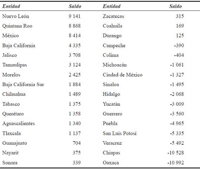 En México, en los censos existen dos maneras para medir y cuantificar la migración. La primera es por la pregunta lugar de nacimiento, donde se cuestiona al entrevistado en qué entidad federativa nació. Las cifras obtenidas a partir de tal interrogante permiten observar los desplazamientos de las personas; sin embargo, al no contar con la fecha del cambio de residencia, se desconoce si el individuo se movió recientemente o desde hace mucho tiempo. Los datos tampoco permiten calcular algunos indicadores como la tasa de migración, pero son útiles para conocer la acumulación de migrantes en un espacio geográfico en el tiempo. La segunda manera es por la pregunta lugar de residencia en una fecha fija anterior, incorporada desde el Censo de 1990, que pretende dar a conocer el número de personas que se movieron entre las entidades federativas en México en una fecha fija, regularmente cinco años antes de la fecha censal. Con los resultados de esta pregunta se pueden hacer cálculos de tasas, pero al reflejar los movimientos recientes de personas, se pueden conocer los nuevos lugares de atracción y expulsión de la población en fechas cercanas a cada censo. Según Rangel Rigotti (2009, p. 227), una contribución importante de tal información es que: