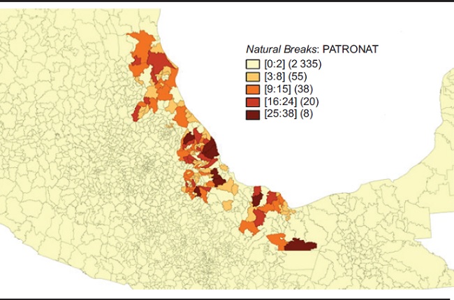 En 2003, 8 municipios tenían entre 25 y 38 patronatos de agua; 20 municipios, entre 16 y 24 patronatos; 38 municipios de 9 a 15 patronatos; 55 municipios, de 3 a 8; y 41 municipios entre 1 y 2 patronatos de agua (véase el Mapa 7).