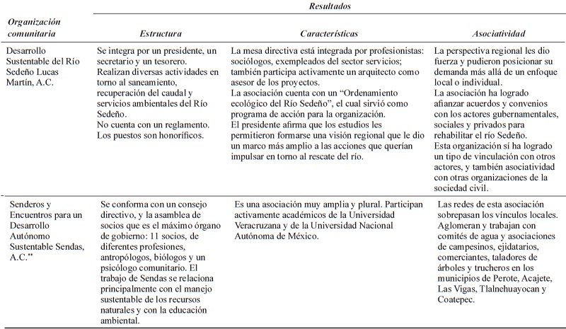 La asociatividad se observó a partir de dos procesos distintos: por un lado, el del caso de la JAMOAP, A.C., y por otro, el de las asociaciones civiles Desarrollo Sustentable del Río Sedeño Lucas Martín, A.C. y Sendas, A.C. El primero de ellos es el resultado de la política estatal que llevaba a cabo la CAEV, enmarcada en la Ley núm. 72, artículo 12, donde se reconocía como prestadores del servicio a los Patronatos y Juntas de Administración, Mantenimiento y Operación de Agua Potable (pero la Ley núm. 21 dejó de reconocerlas, con el argumento de que hasta que no se expidiera el reglamento, seguirán funcionando como lo habían estado haciendo). Sin embargo, esta asociatividad no se ha impulsado más desde que se fundó dicha organización, a pesar de que existen otras OCSAS muy próximas a ellos.