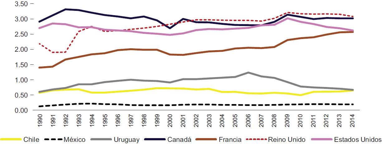 Si bien la recaudación predial ha aumentado ligeramente desde que está en manos de los gobiernos locales, tanto en términos reales y como proporción del producto interno bruto (PIB) (véase la Gráfica 2), lo que se extrae por este impuesto está muy lejos de lo que recaudan otros países latinoamericanos y de la OCDE (Organización para el Desarrollo Económico) (véase la Gráfica 3).