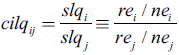 A continuación, el cociente de localización (LQ, por sus siglas en inglés) industrial cruzado (CILQ) se deriva del SQL para evaluar la importancia relativa de una industria proveedora i con respecto a la industria compradora j (véase la Ecuación 3):