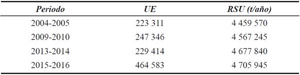 Para 2014 en la CDMX el total de UECS fue de 415 481 (Censos Económicos, 2014) y para el segundo semestre del 2015 se registraron 460 370 (INEGI, 2016a), lo que representó un aumento de 10% en un año. En un estudio similar realizado en la ciudad de Dublín, Purcell y Magette (2009, p. 14), registraron 2 261 unidades económicas comerciales con una generación estimada de 3 523.5 toneladas de RO por semana, es decir, 500 t/d, lo cual indica que el número de UECS puede ser un factor que influye en la cantidad de generación de estos residuos, como lo menciona Grazhdani (2016, p. 11).