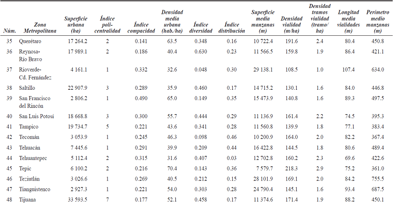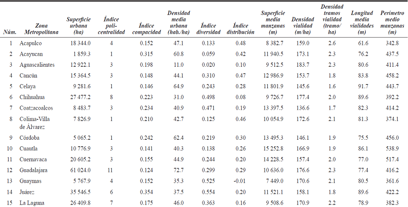 Keywords: urban form, indicators, metropolitan area, compact city, Mexico.