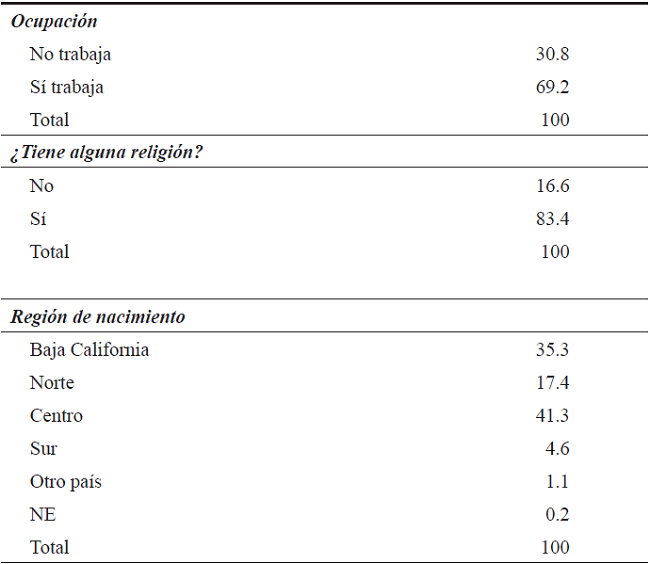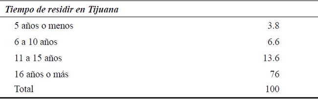 Finalmente, sobre la condición migratoria de la población analizada, es importante subrayar que sólo poco más de la tercera parte del total de madres y padres son nativos del estado de Baja California, por representar únicamente el 35.3% de la población bajo estudio. En cambio, como era de esperarse, la mayoría son inmigrantes por haber nacido en alguna de las entidades federativas distintas a la de Baja California. Entre éstas destaca la alta proporción de las y los nacidos en la Región Centro del país (41.3%), en contraste con la minúscula proporción de los nacidos en la Región Sur (4.6%). Por otra parte, nótese que sólo el 17.4% de las y los inmigrantes nacieron en alguno de los otros estados norteños del país. Esta situación hace que sólo poco más de la mitad del total de los encuestados sean oriundos de la Región Norte, considerando incluso a los nacidos en Baja California, por representar el 52.7% de los casos. Por lo cual, se trata de una población en estudio prácticamente originaria de dos regiones: los nacidos en la Región Centro y los nacidos en la Región Norte, con un componente pequeño de nativos de esta última región nacidos en Baja California.