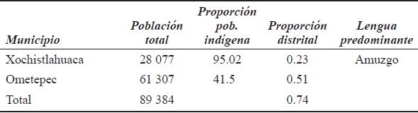 Como ya se mencionó, para desarrollar la metodología antes planteada, deberán identificarse los municipios de la entidad que cuenten con más del 40% de población indígena, su lengua predominante, y calcular su proporción distrital (Cuadro 1 y Mapa 2).