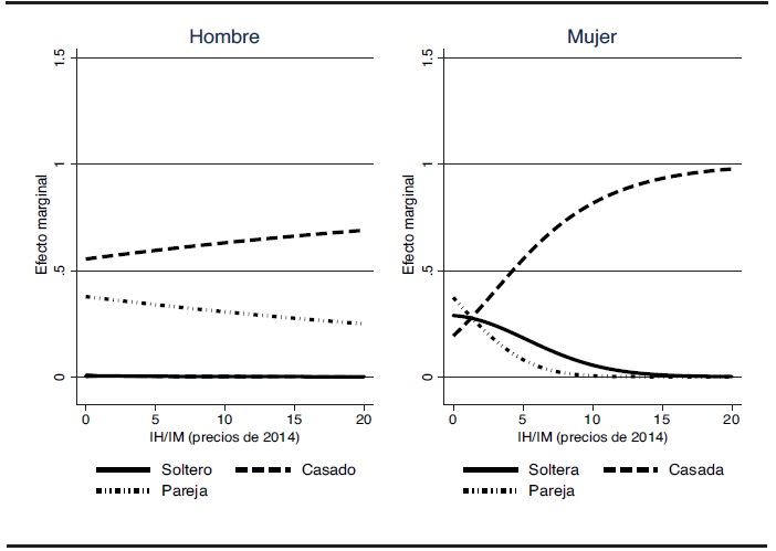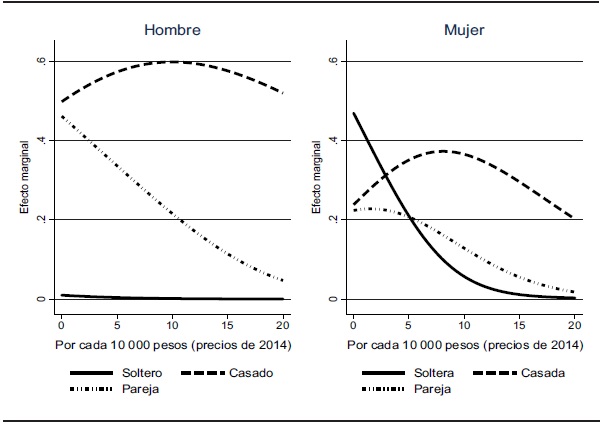 En México, la decisión de casarse puede ser vista como una estrategia de supervivencia para algunas mujeres. A medida que estas mujeres se incorporan al mercado laboral, pueden encontrar que el matrimonio o vivir con una pareja es una condición más costosa. Por lo tanto, los incentivos para emparejarse disminuyen, mientras que algunas de las mujeres que ya tienen pareja y trabajan podrían decidir vivir solas. Se ha observado evidencia de este comportamiento en países como Estados Unidos (Edin, 2000).3