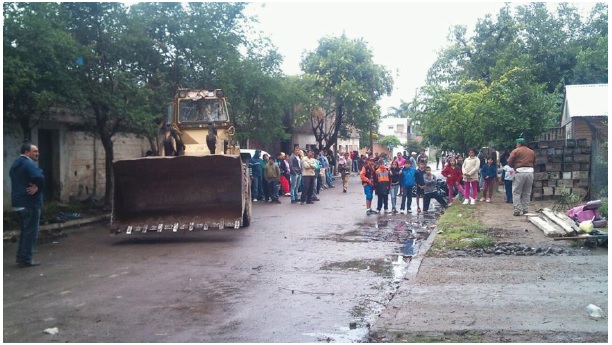 Estas operaciones de expulsión se realizan mediante la articulación de acciones entre la administración pública, el IPV, que construye el barrio para el traslado, la municipalidad propietaria del suelo original y que ejecuta las obras posteriores de parquización, y los emprendedores inmobiliarios que desarrollan o han desarrollado importantes inversiones en las proximidades (Tucumán Center, en el caso de Villa Piolín). También es importante resaltar que el proceso de erradicación y traslado fue muy conflictivo debido a la fuerte oposición que presentaron los vecinos (Foto 1). Este tema fue motivo de numerosas noticias en la prensa local, que denunciaba la fuerte presión de los colonos contra el abandono de sus hogares de origen.