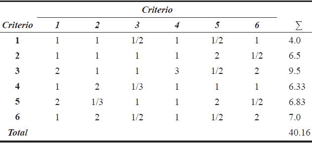Una vez realizadas las comparaciones, se procedió a calcular el vector propio de la matriz de criterios que representa la importancia relativa de los criterios comparados en cada una de las matrices: