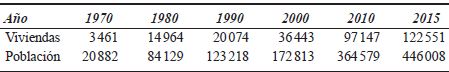 De 2000 a 2015 la población municipal casi se triplicó, y el número de viviendas aumentó en más de 300% (véase el Cuadro 3).