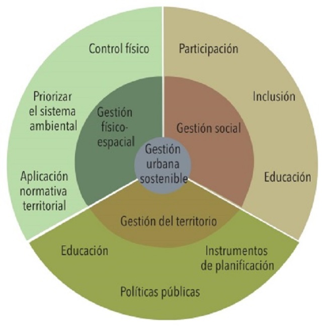 La gestión urbana sostenible hace referencia a la administración de un territorio que busca mantener el equilibrio e integrar las políticas ambientales y estrategias de desarrollo económico y social. Estas dimensiones del territorio interactúan de forma que sus habitantes puedan vivir de él sin comprometer los recursos de las generaciones futuras (CEPAL, 2019).