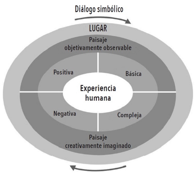 Desde la perspectiva de la geografía del envejecimiento, se considera que el análisis de la experiencia humana está ligado a los paisajes objetivamente observables y a los lugares creativamente imaginados, que son capaces de evocar una amplia gama de emociones que van desde lo básico a lo complejo y de lo positivo a lo negativo (véase la Figura 2).