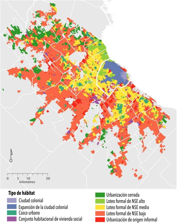 Así definidos, los tipos de hábitat son configuraciones espaciales resultantes que condensan grandes tendencias pasadas y presentes del proceso de poblamiento. Son a la vez una herramienta teórica de bajo nivel de abstracción y un instrumento potente para analizar las desigualdades urbanas que se estructuran en la relación entre condiciones habitacionales, distribución de la población y efectos agregados de la inscripción social a determinados contextos urbanos.