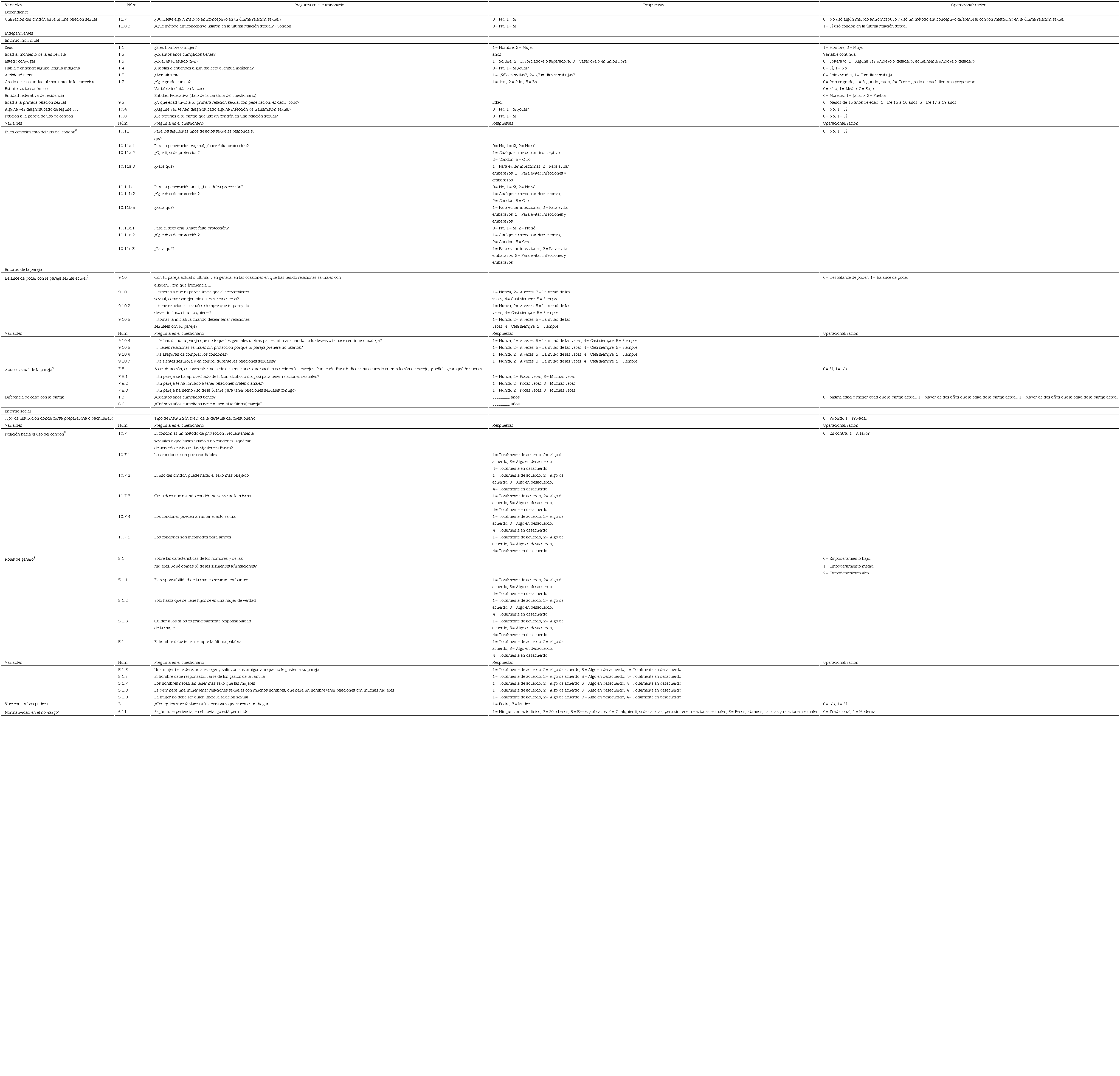 Posteriormente, se efectuó un análisis bivariado utilizando la prueba Ji-cuadrada para verificar si hay asociación estadística entre las características consideradas dentro de cada entorno (individual, de la pareja y social) respecto a la utilización del condón en el último encuentro sexual. Se calcularon los porcentajes e intervalos de confianza al 95% y se realizaron pruebas T para las diferencias de proporciones entre la característica estudiada y las variables de interés. Asimismo, se verificó la correlación entre covariables nominales -mediante el coeficiente de correlación de Pearson-, así como la correlación entre covariables ordinales mediante la correlación policórica (Olsson, 1979), obteniendo correlaciones bajas entre covariables.