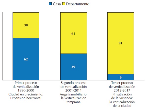 Además de lo anterior, se fortalecieron otros instrumentos de planeación como las áreas de gestión estratégica, las cuales operan a través de figuras como los polígonos y sistemas de actuación (social, privada o por cooperación) y el sistema de transferencia de potencialidad de desarrollo urbano (Morales, 2017; Lara Trejo y Bolaños, 2016). A través de esta flexibilización se crearía el escenario idóneo para el aumento del desarrollo inmobiliario, el cual se enfocó principalmente en la vivienda en departamento.