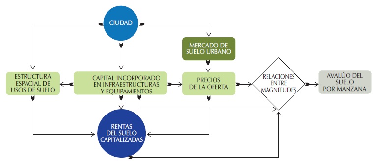 Las teorías de la renta del suelo urbano desarrolladas a partir de la teoría general expuesta por Marx en El Capital, han podido explicar las relaciones de este suelo con el sector de la construcción y con las actividades socioeconómicas específicas de la ciudad, la generación en ellas de rentas que valorizan la propiedad sobre el suelo, y cómo éstas estructuran su precio, constituyendo su aplicación una alternativa válida científica y técnicamente a la valuación colectiva de predios urbanos.
