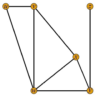 Con base en los caminos se define la distancia entre dos vértices, como la longitud del camino más corto entre ellos. De esta manera, la distancia entre el vértice u y v es uno, entre u y w también es uno, entre u y x es dos, entre u e y también es dos, mientras que entre u y z es tres. También se puede definir la distancia cuando las aristas tienen pesos; en el caso de las redes de vialidades, los pesos más comunes son las distancias euclidianas entre las intersecciones, pero para los fines de este trabajo es suficiente con considerar la distancia que se ha presentado.
