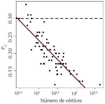En la Figura 8 se muestra la relación entre el número de vértices y los valores de PG . Ésta es consistente con la reportada recientemente para un conjunto de 300 ciudades alrededor del mundo (Pichardo-Corpus, 2023).