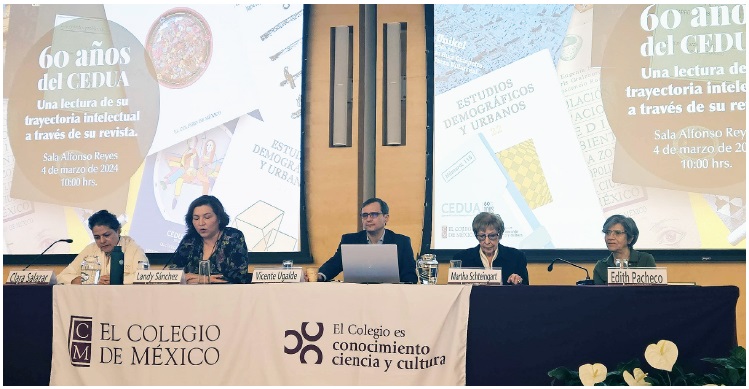 Buenos días a todas y a todos. Quisiera transmitirles el saludo y la felicitación de la presidenta de El Colegio de México, Silvia Giorguli, quien como ustedes saben es socióloga, demógrafa e integrante del Centro de Estudios Demográficos Urbanos y Ambientales (CEDUA). Es un privilegio estar aquí. Le agradezco a Landy Sánchez, directora de este centro de estudios, por haberme invitado a celebrar los sesenta años del Centro, y hacerlo compartiendo la mesa con tan apreciadas colegas. Saludo con gusto a Clara Salazar, directora de la revista Estudios Demográficos y Urbanos, y a Edith Pacheco y a Martha Schteingart, quienes han hecho dos extraordinarias presentaciones sobre los dos campos en los que participa la revista desde cerca de cuatro décadas. Saludo también con mucho gusto a quienes han dirigido el Centro y la revista, a todos mis colegas, a los egresados, a nuestros estudiantes y al personal administrativo, que de muchas formas hace posible que el trabajo del Centro no se detenga. Todos han contribuido de diversas maneras a la consolidación de este sexagenario lleno de vitalidad que es el CEDUA. Saludo también con respeto, porque así lo inspira su trabajo, y con afecto, porque así lo inspira su persona, a la editora, ya por muchos años, de la revista, Lety Argüelles.