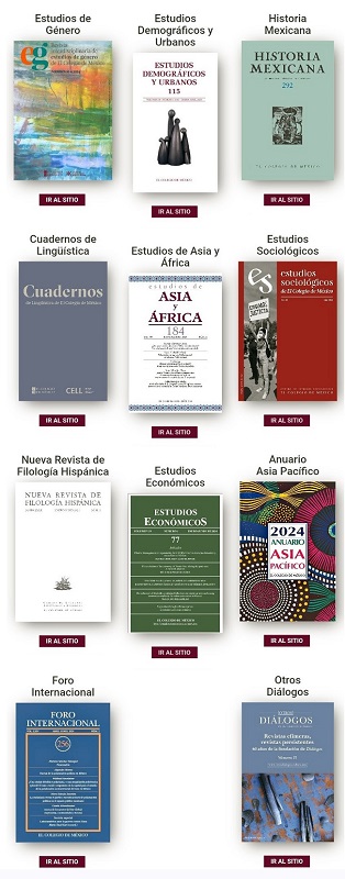 Después aparecieron Foro Internacional, fundada en 1960 también por Don Daniel; Estudios de Asia y África, que apareció como Estudios Orientales en 1966; Economía y Demografía en 1967; Estudios Sociológicos en 1983; Estudios Demográficos y Urbanos, así como Estudios Económicos, en 1986; Cuadernos de Lingüística en 2013; el Anuario Asia Pacífico, en 1993; y la Revista Interdisciplinaria de Estudios de Género en 2015.