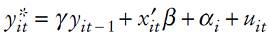 es la propensión no observable a tener restricciones financieras; xit representa el vector de las variables condicionantes que se presume son estrictamente exógenas; yit-1 representa el rezago temporal de la variable dependiente yit y αi los efectos aleatorios específicos individuales no observados que consideran la heterogeneidad que no varía con el tiempo; mientras que uit representa el término de error que se supone está distribuido