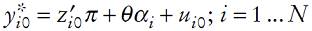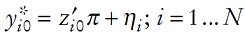 en donde zi0 es un vector de variables exógenas que incluye xi0 y variables adicionales que pueden verse como instrumentos y π es el vector de los coeficientes asociados con zi . Utilizando una proyección ortogonal, ηi se expresa como: