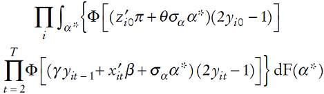 Stewart, M. B. (2006), “Maximum Simulated Likelihood Estimation of Random-Effects Dynamic Probit Models with Autocorrelated Errors”, Stata Journal, vol. 6, núm. 2, 256 pp.
