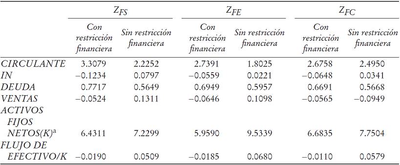 Con base en la clasificación por tamaño, proponemos la siguiente variable (Z_FE) para medir las restricciones financieras: