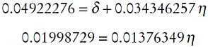 Así, se debe resolver para δ y η en el sistema de ecuaciones: