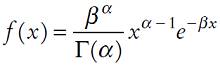 La variable xj es una variable aleatoria que se distribuye según la distribución gamma. Así, la función de densidad de x es:
