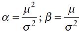 Como en una función gamma, la media (μ) y la varianza , están relacionadas con α y β de acuerdo con