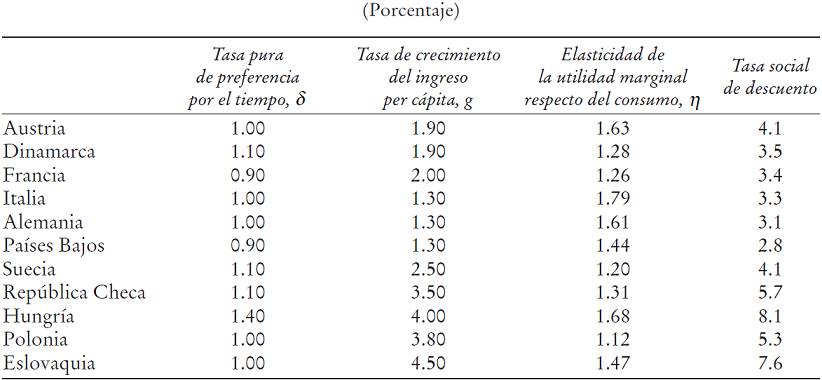 Por su parte, la Comisión Europea (2008) sugiere el uso de las tasas de descuento presentadas en el Cuadro 2 para distintos países.