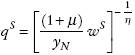 No llamamos a qE tipo de cambio real de equilibrio “a secas” -como es frecuente en la literatura; véase (Hinkle y Montiel, 1999)- porque en nuestro marco el equilibrio general es más demandante. Además del pleno empleo y de la sostenibilidad de las cuentas externas, el equilibrio general requiere una distribución del ingreso acorde con las demandas sociales. Siguiendo a (Olivera, 1991), el equilibrio general se logra cuando el equilibrio macroeconómico coincide con el equilibrio social. Este último ocurre cuando los trabajadores en situación de pleno empleo obtienen el mínimo salario real al que aspiran y que demandan en las negociaciones salariales. A este nivel de salario real lo llamamos de equilibrio social y lo designamos wS . Este nivel de salarios determina por medio de la ecuación (10) el tipo de cambio real de equilibrio social (qS ).