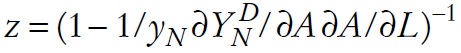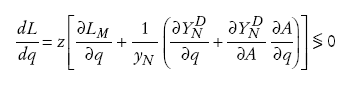 (A3)El empleo en N depende de la demanda doméstica de N, la cual depende, a su vez, de q y A. Usando las ecuaciones (3), (13) y (14) tenemos: