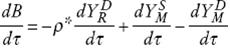 Al gasto nominal agregado en bienes y servicios transables lo llamamos YT . Por simplicidad asumimos que las proporciones del gasto agregado en R y en M son iguales a las del consumo privado, α y β, respectivamente.