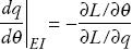 (A16)Empleando los resultados de la subsección 2 de este apéndice, se deduce que la pendiente de la curva EI es indeterminada debido a que el signo de ∂L/∂q es también indeterminado (véase A8). Adoptando la condición (A9), la pendiente de la curva es positiva, que es lo que se asumió para el análisis de la sección 3.