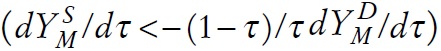 Al enfrentar una demanda internacional perfectamente elástica, el nivel de actividad en M depende negativamente de W/PM ; esto significa que LM aumenta con subidas de q y caídas de τ .